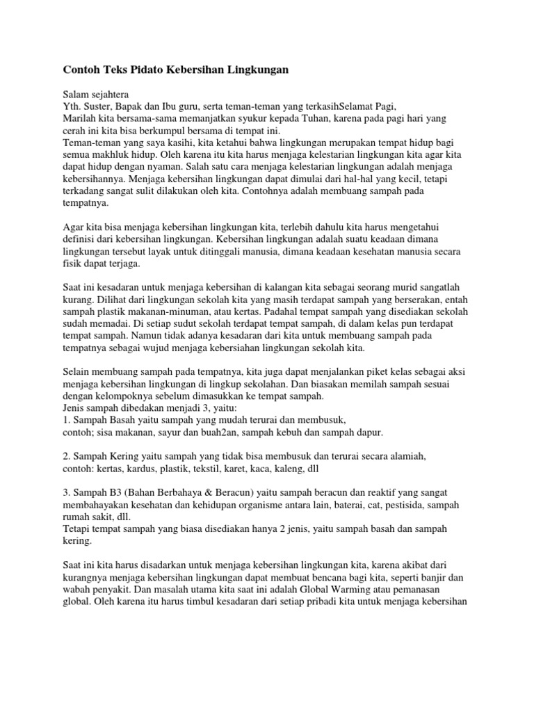Teks Pidato Persuasif Tema Bersih Sovia Gunhal Kbb