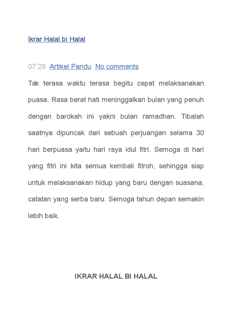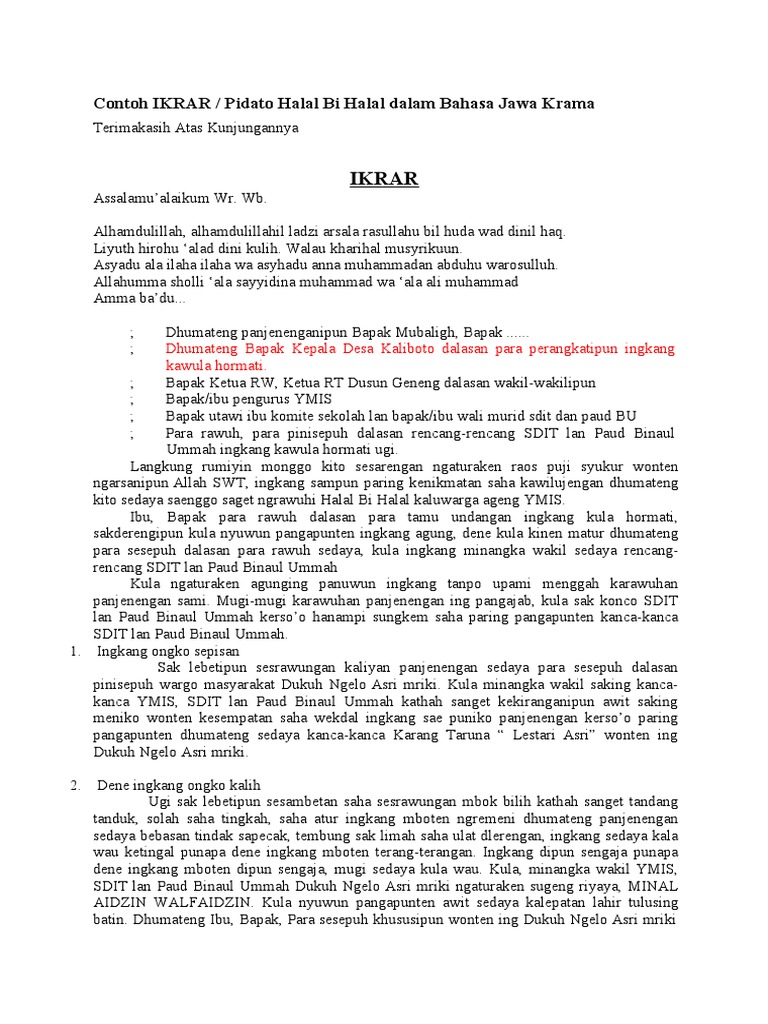 Artikel contoh ikrar halal bi halal halal bi halal bahasa jawa ikrar halal bi halal. Ikrar halal bihalal warga karangturi rw 07 di masjid sholichin. Halal bihalal adalah salah satu tradisi dan budaya dari acara selanjutnya adalah penyampaian ikrar syawalan oleh warga rt 01 rw 01 yang mana pada.