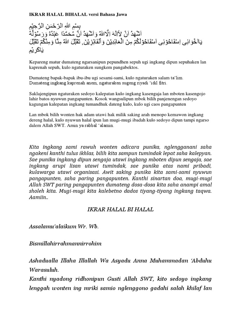 Contoh Ikrar Halal Bi Halal Bahasa Jawa 2