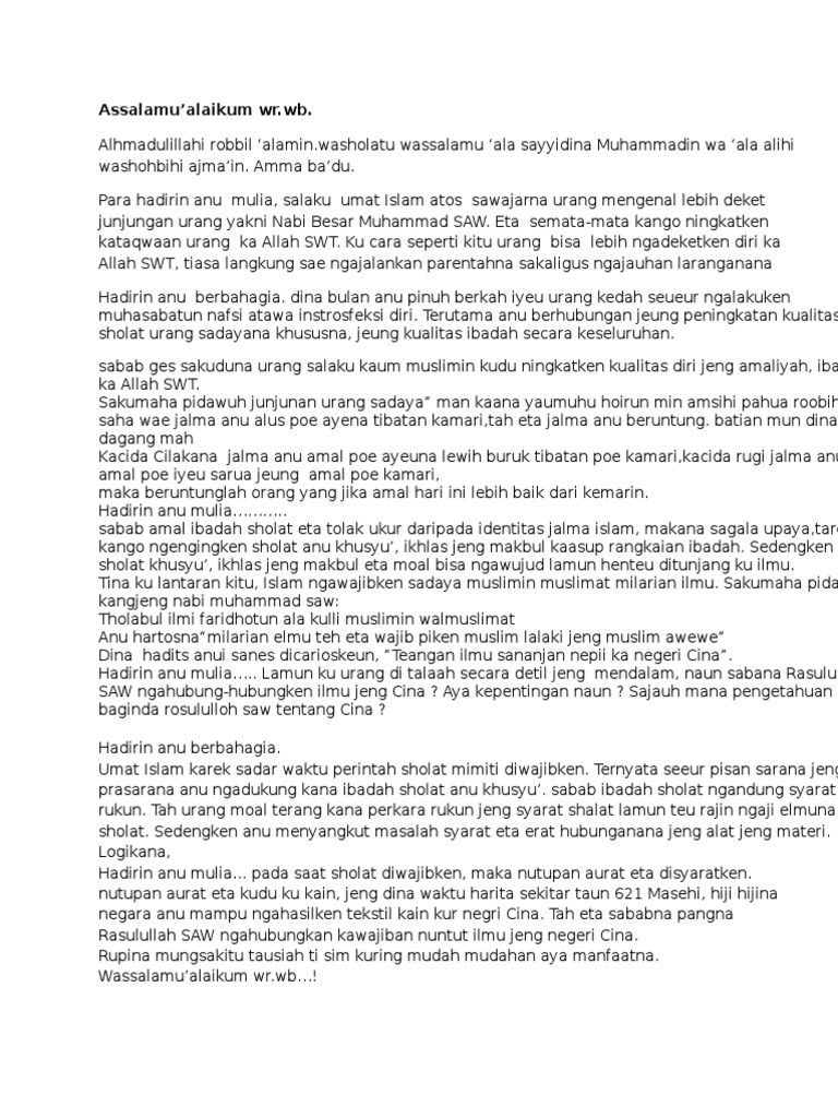 Teks Ceramah Bahasa Sunda Tentang Sholat Lakaran