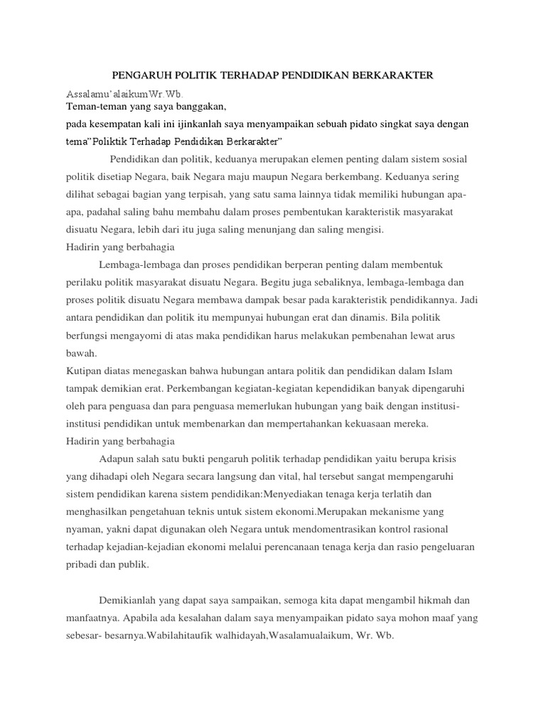 Contoh Teks Pidato Pengaruh Politik Terhadap Pendidikan Berkarakter