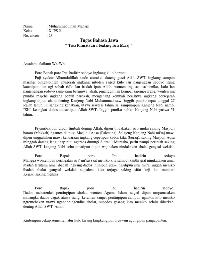 Teks Pidato Pembawa Acara Mc Bahasa Jawa 3 Contoh Terbaik Makalah Pedia