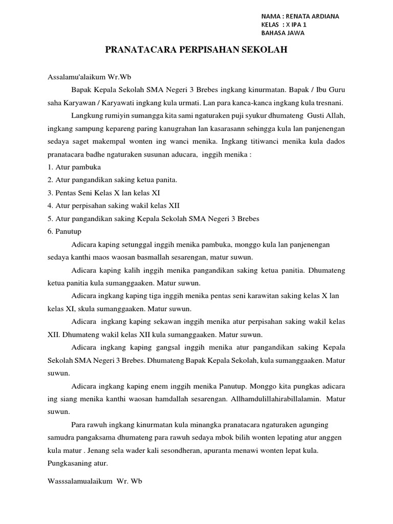 Contoh Surat Undangan Perpisahan Dalam Bahasa Jawa Cute766. CONTOH NASKAH PIDATO MENGHINDARI KENAKALAN REMAJA Assalamualaikum wr. Contoh Contoh Teks Pidato Bahasa Jawa Tentang Perpisahan Kelas 6 Terbaik.
