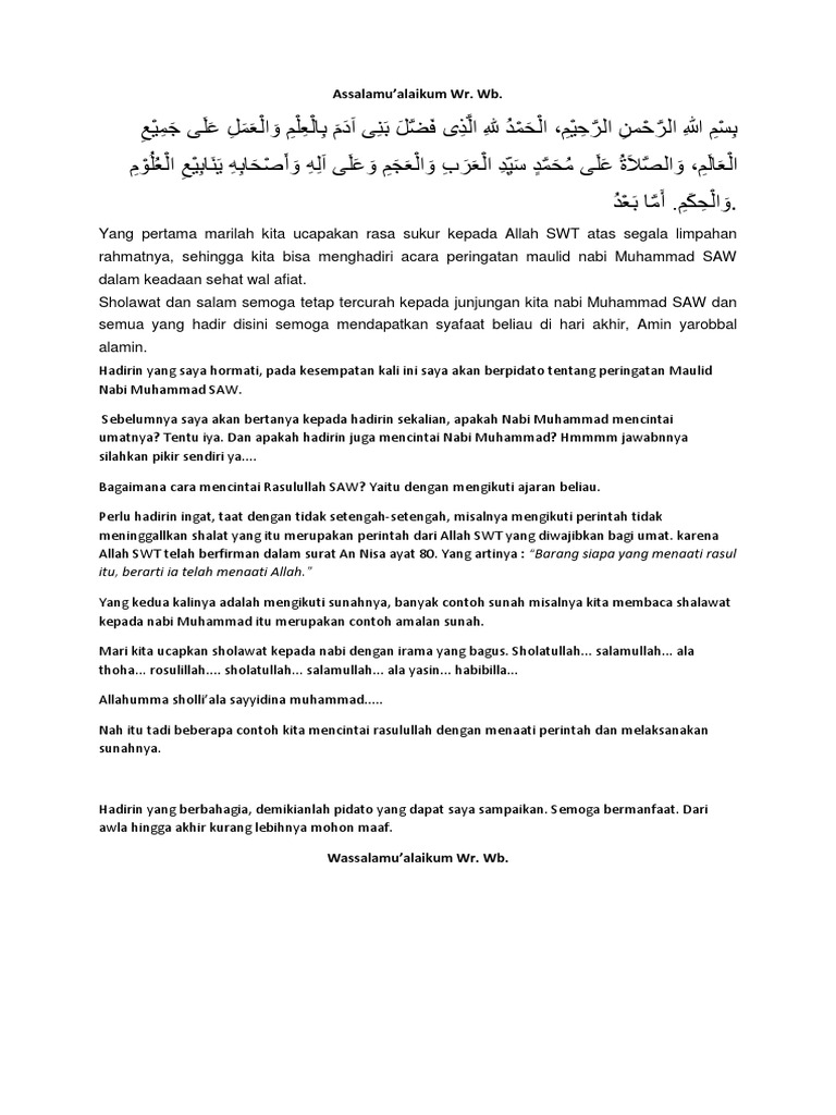Doc Pidato Singkat Peringatan Maulid Nabi Muhammad Saw Daurulang Daur Academia Edu