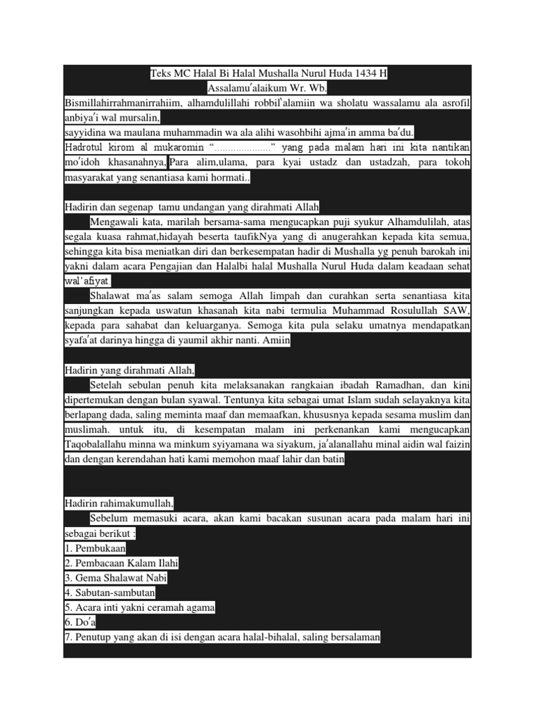 Doc Teks Mc Acara Halal Bihalal Riani Prihatiningsih Academia Edu