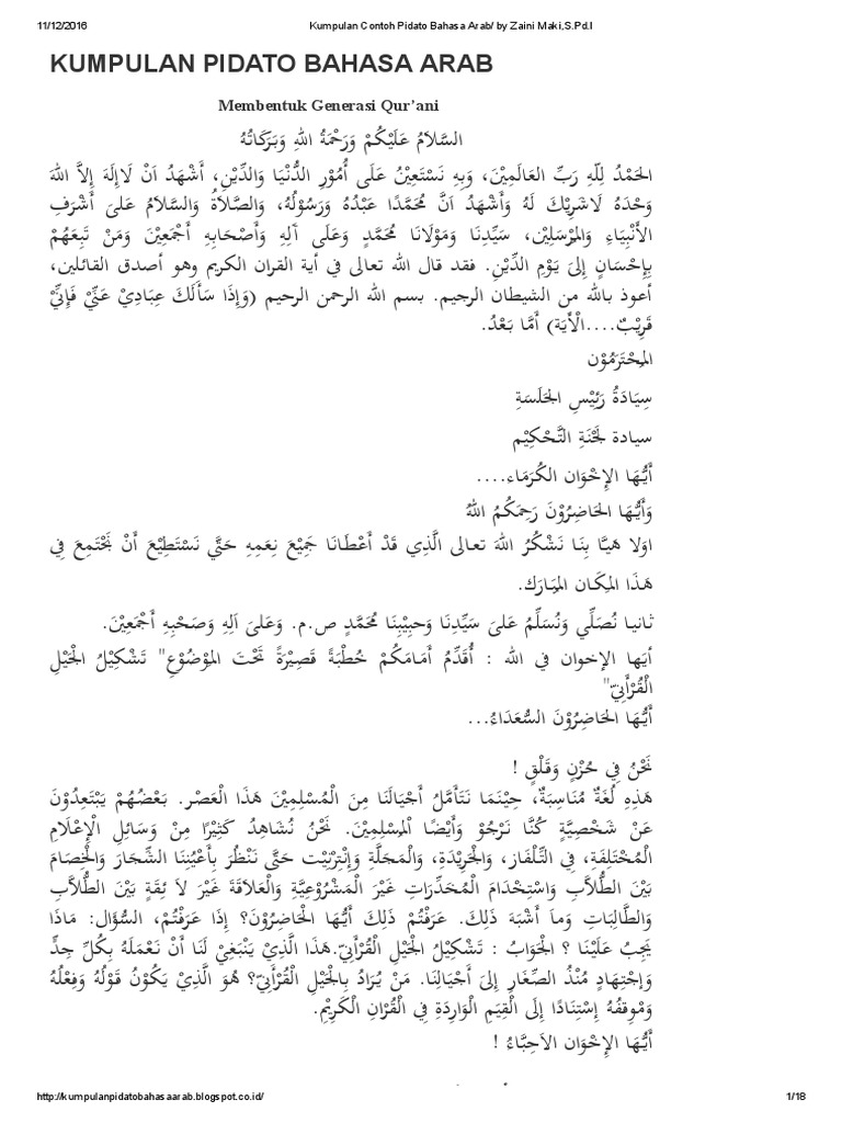 Kumpulan Contoh Pidato Bahasa Arab By Zaini Maki S Pd