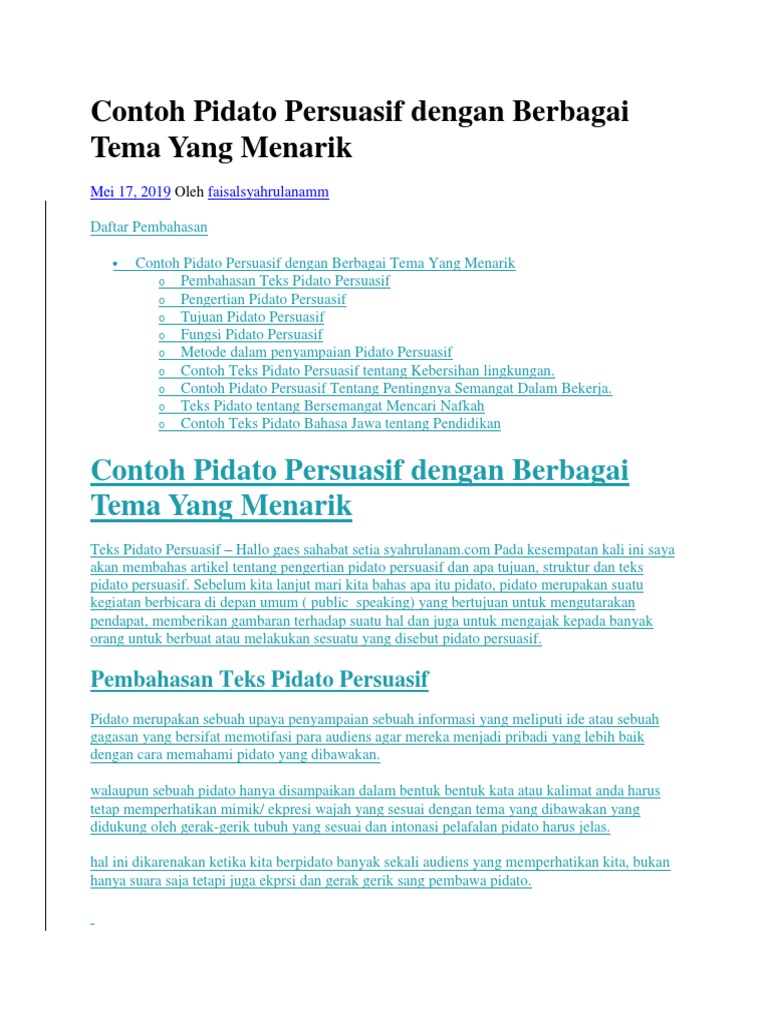 Contoh Pidato Persuasif Dengan Berbagai Tema Yang Menarik