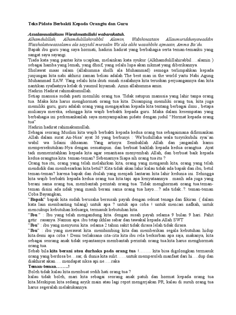 Teks Pidato Berbakti Kepada Orangtu Dan Guru