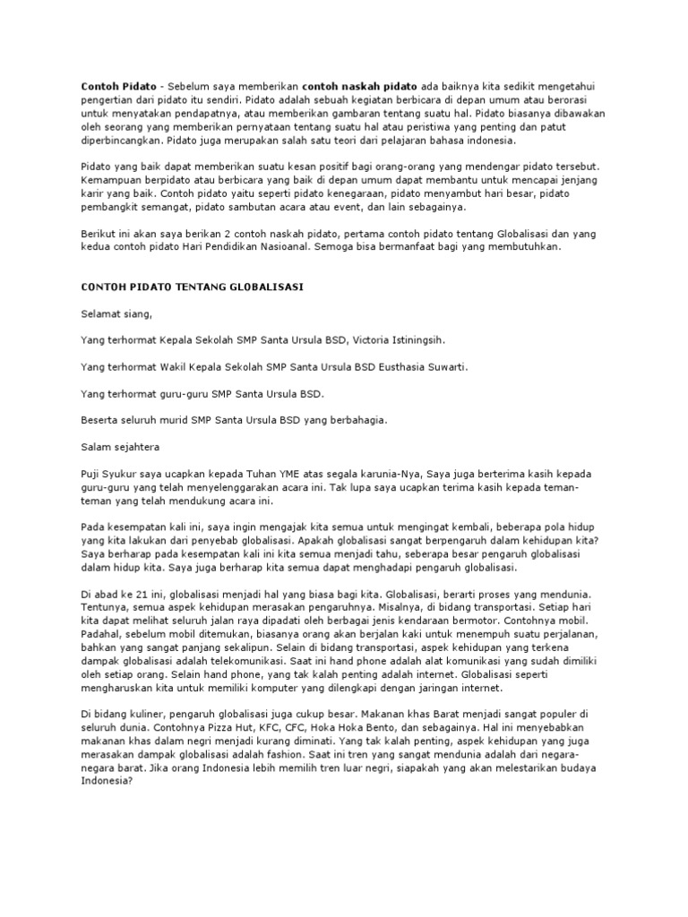Contoh Naskah Pidato. Sehingga pidato yang disampaikan. Kumpulan contoh pidato persuasif singkat berikut ini berusaha memberikan beberapa teks pidato untuk semua orang terutama siswa sehingga dapat berlatih menyampaikan pidato di depan kelaskhalayak ramai.