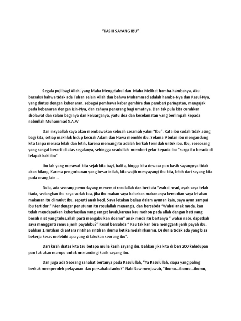 Contoh Teks Pidato tentang Ayah Ayah adalah orang yang telah membesarkan kita bersama dengan ibu kita. 7 kumpulan contoh teks pidato tentang ibu singkat terbaru 1Untuk sahabat muslim yang ingin memuliakan ibunya sebaiknya belajar dari isi ceramah singkat tentang ibu. Contoh pidato atau ceramah tentang kasih sayang orang tua ini pembahasnanya cukup singkat saja mulai dari salam pembuka penghormatan isi dan penutup.