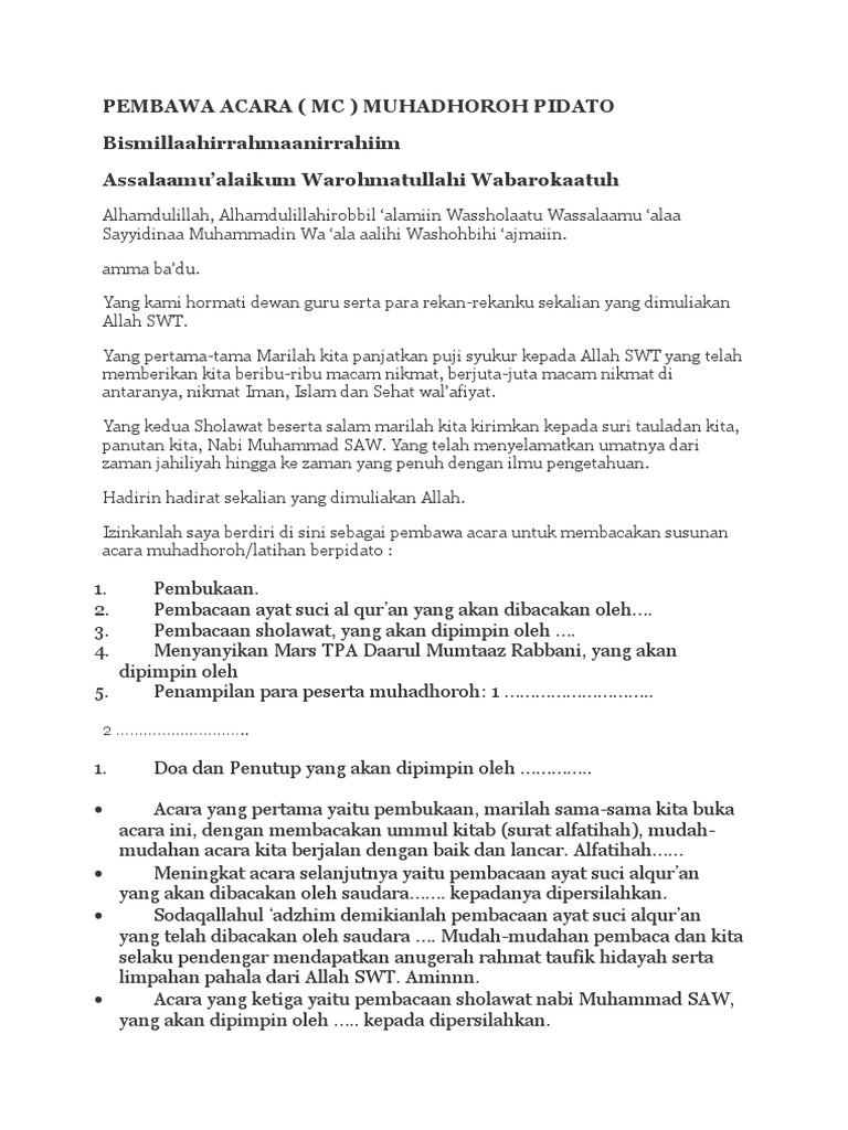 Teks Pembawa Acara Muhadhoroh Kumpulan Contoh Teks Mc