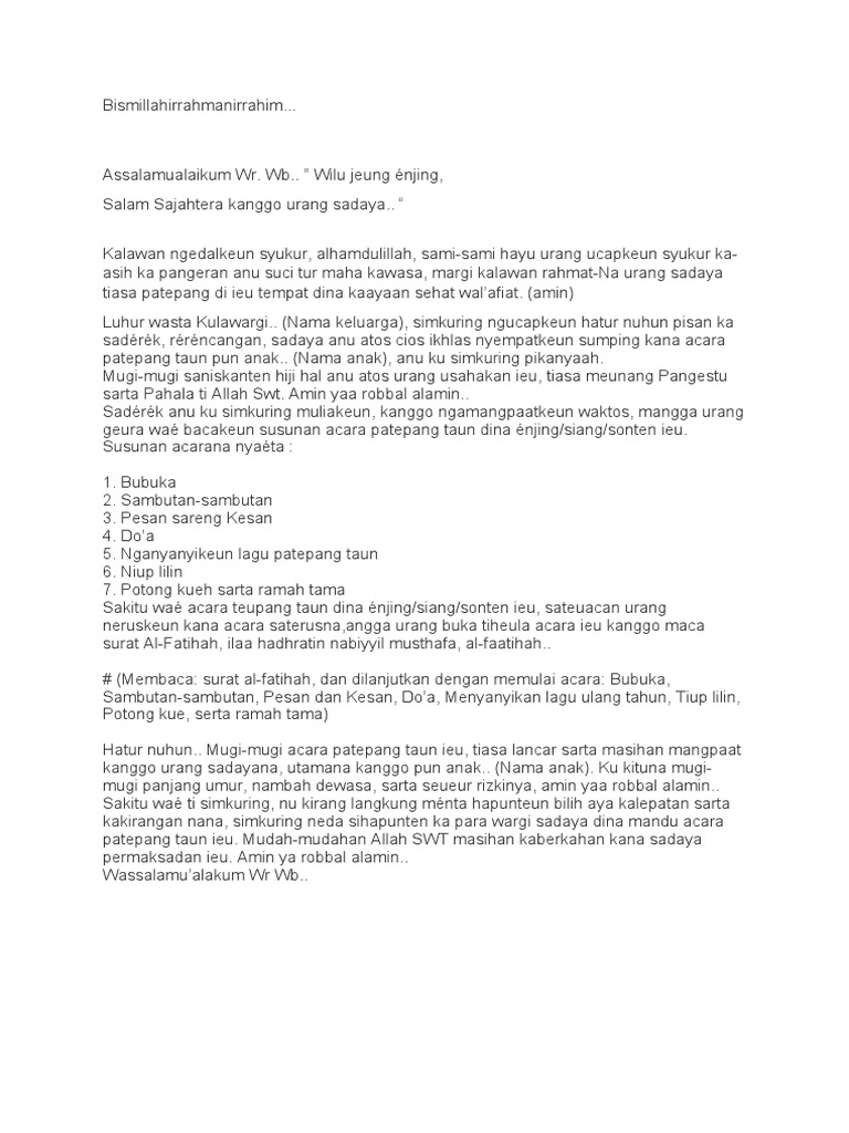 Kumpulan Contoh Surat Halal Bihalal Bahasa Sunda yang Benar 2019. Contohnya saja tema yang biasa diangkat adalah pidato bahasa sunda tentang acara. Related image with contoh teks mandu acara bahasa sunda singkat berbagai teks penting.