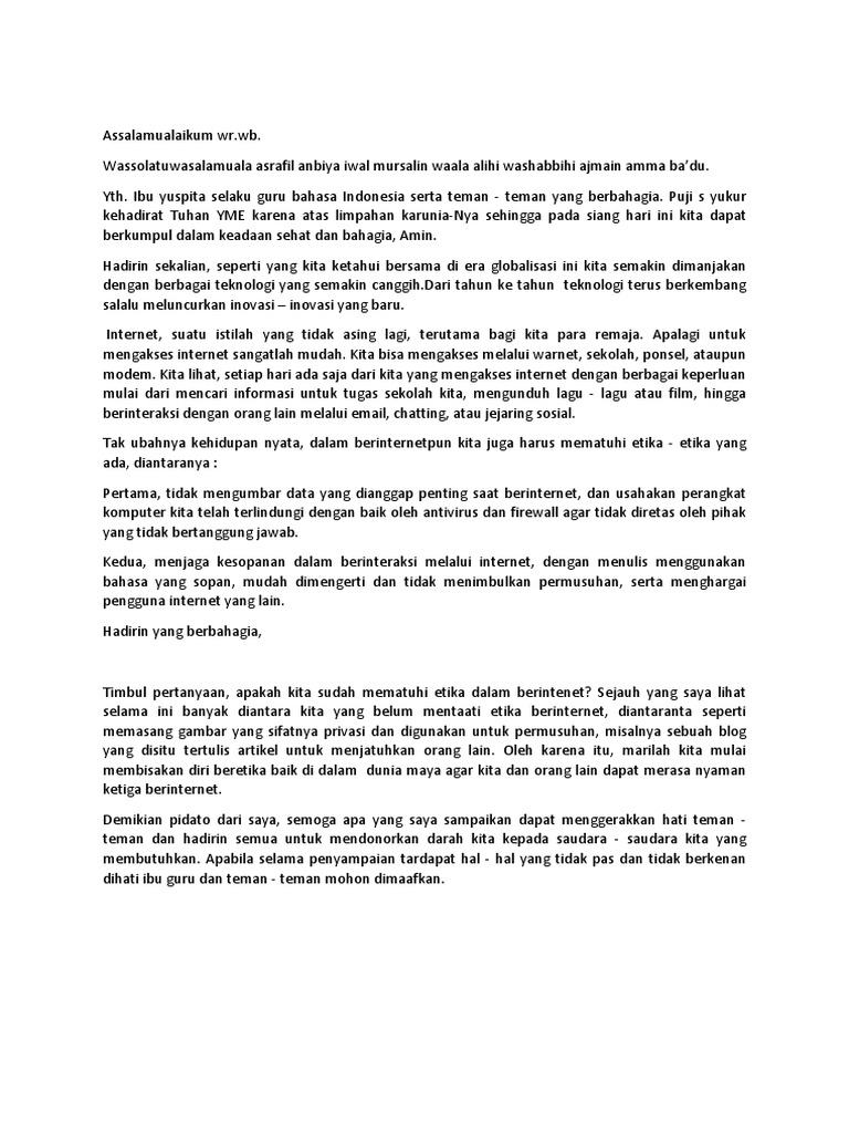 Doc Kumpulan Pidato Pengaruh Internet Terhadap Remaja Irma Triyani Yahya Academia Edu