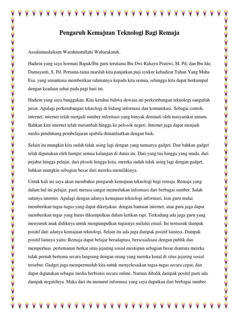 Pidato Pengaruh Kemajuan Teknologi Bagi Remaja. Teks Pidato Singkat Tentang. Pidato Pengaruh Internet Terhadap Remaja Assalamualaikum wr wb.