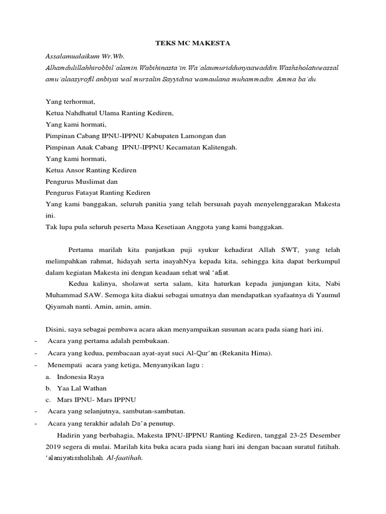 Kumpulan Teks Pembawa Acara Ipnu Ippnu Terbaik Kumpulan Contoh Teks Mc