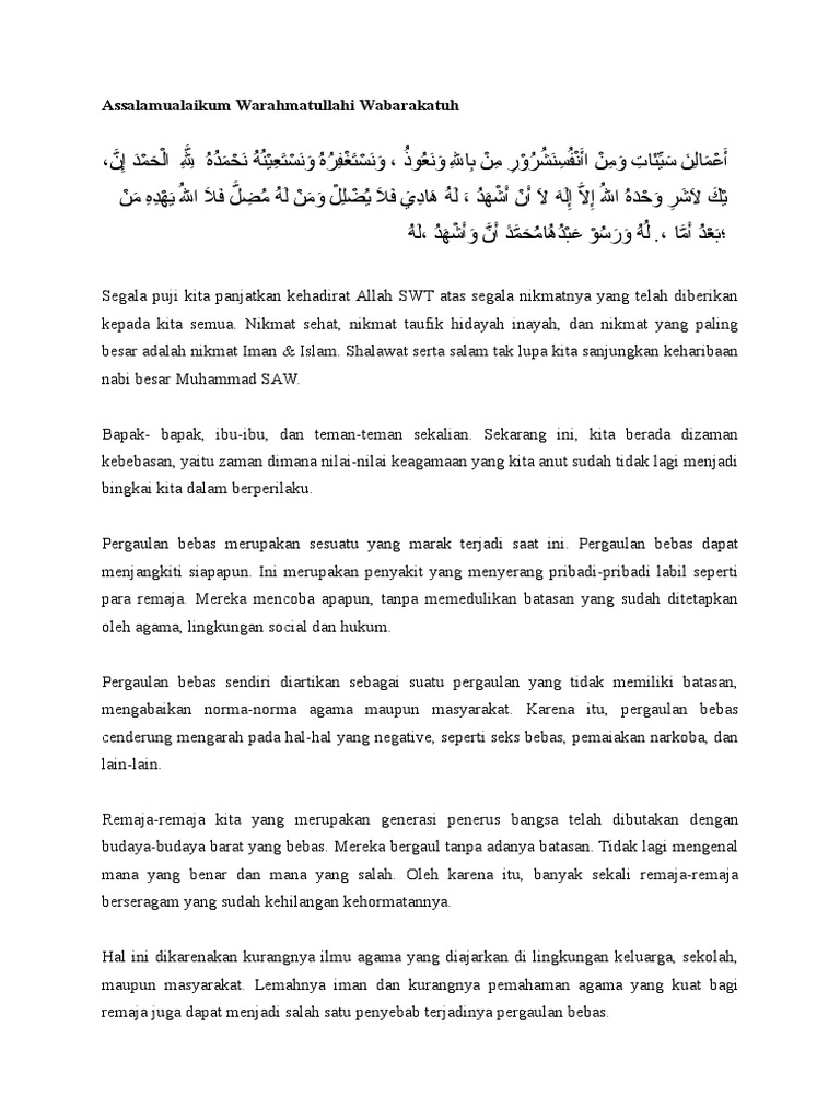 Teks Ceramah Dakwah atau Pidato Agama Islam Tentang Pergaulan Bebas. Admin blog Contoh Soal Terbaru 24 January 2022 juga mengumpulkan gambar-gambar lainnya terkait contoh teks ceramah tentang pergaulan bebas dibawah ini. Contoh Teks Pidato Bahasa Inggris Tentang 1 Muharram Klewer D.