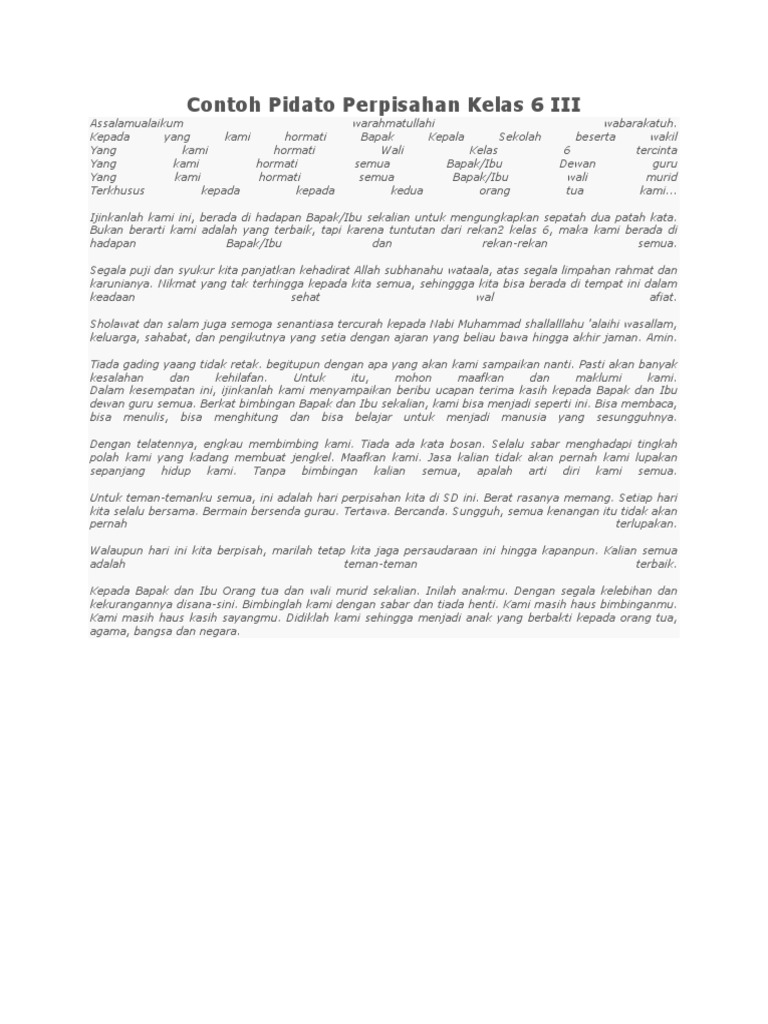 Pidato Perpisahan Kelas 6 Singkat Jelas Padat Pdf